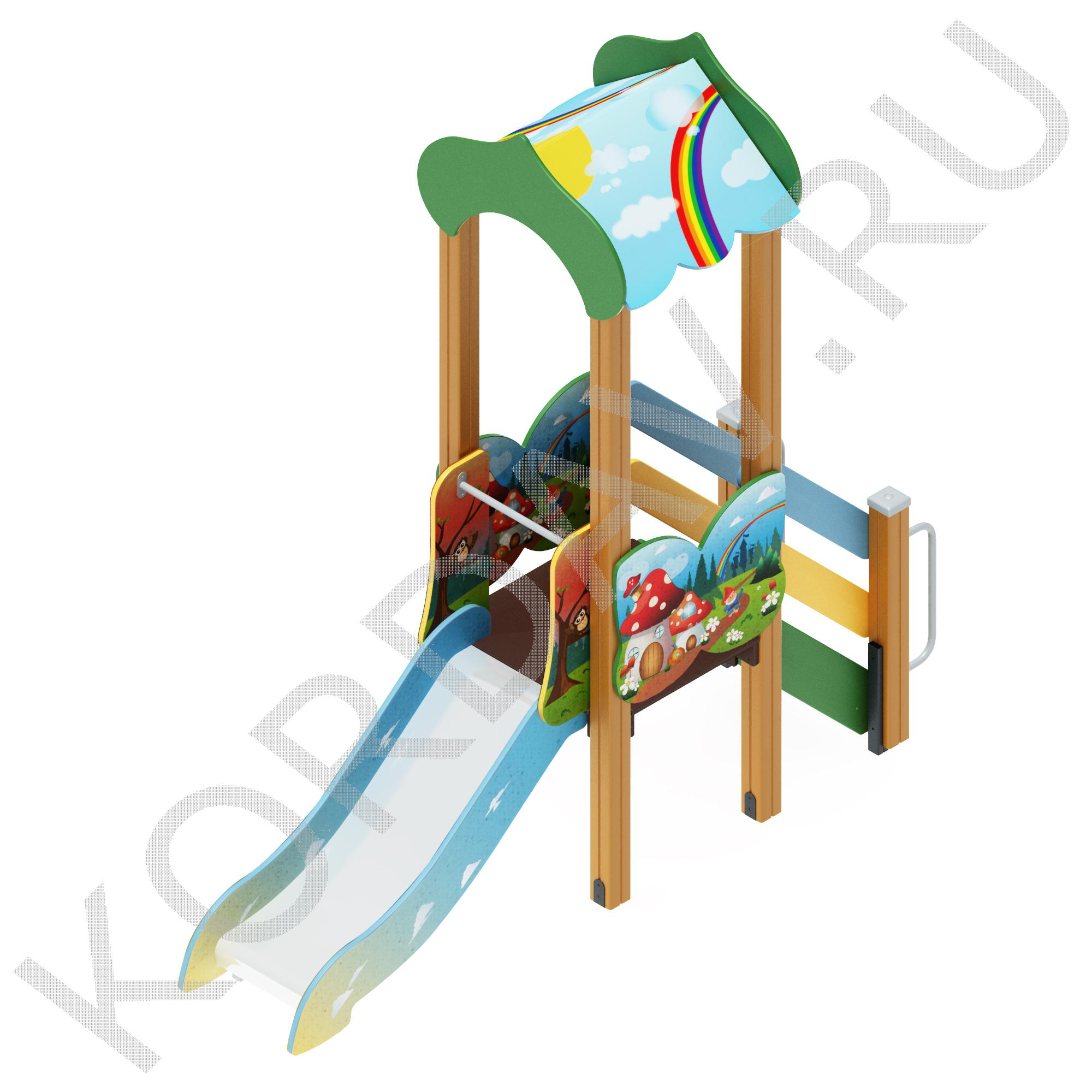 Комплектация: одна башня с крышей, горка с поручнем, лестница.