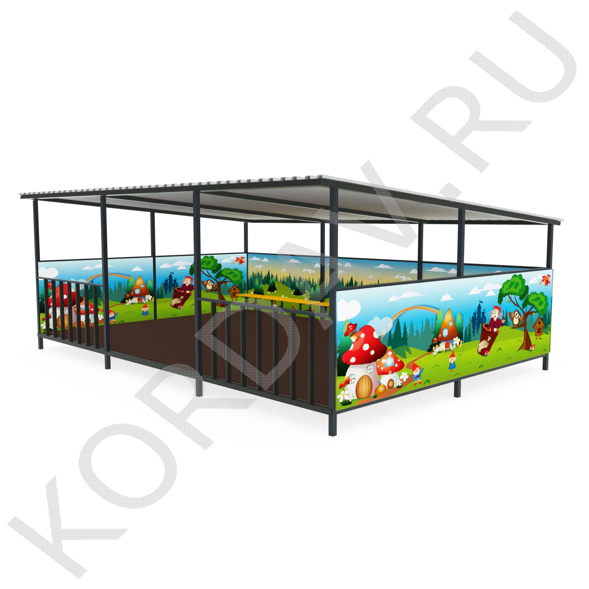 Борта: Заднее ограждение стен выполнен из листов фанеры толщиной не менее 18мм. Высота задней стенки 1200 мм. Фанерный лист крепиться к столбам путем крепежного соединения. Боковые стенки теневого навеса выполнены из влагостойкой фанеры толщиной 18 мм, высотой не менее 1200 мм. Боковые борта закрепляются к каркасу при помощи болтового соединения. Передние стены с фасадной стороны навеса выполнены в виде решетчатого ограждения высотой не менее 1000 мм. Ограждения выполнены из стальной профильной трубы 60х30 мм и из стальной профильной трубы 25х25 мм. Ограждения закрепляются к каркасу при помощи болтового соединения.